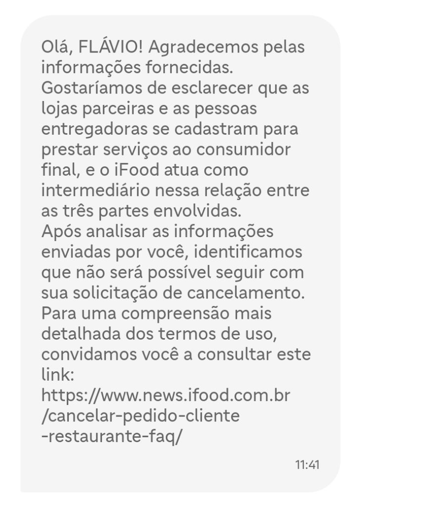 Resposta do ifood: