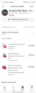 Queria comprar um Floratil e como tinha uma promoção de 30 reais para pedidos acima de 100 reais eu fiz um pedido um pouco maior. Comprei e paguei por 2 Floratil, 1 Fita dental e 1 Tylenol. Até aqui tudo bem, com o frete e com o desconto o pedido ficou em 114,65 reais. Sim, comprei a fita e o tylenol apenas para completar o valor para usar o cupom.