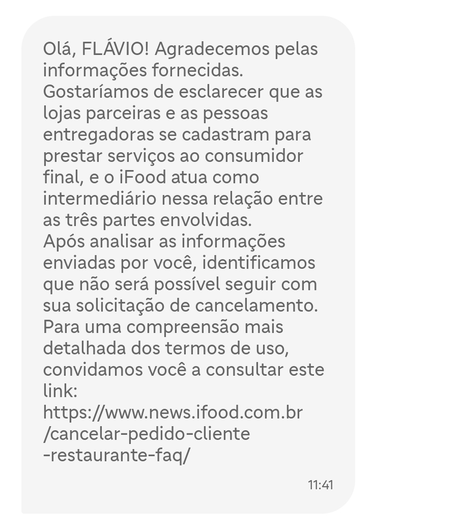 Resposta do ifood: