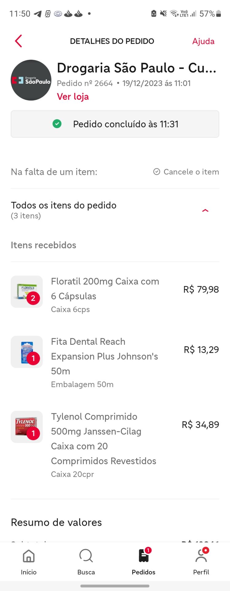 Eu recebi o pedido e depois de ter falado o código de validação para o entregador ele me informou que um dos itens estava em falta (era justamente o Floratil). É comum não ter um item ou outro, mas até hoje o estabelecimento sempre tinha entrado em contato e cancelava. Dessa vez foi diferente, não me avisaram que estava em falta.