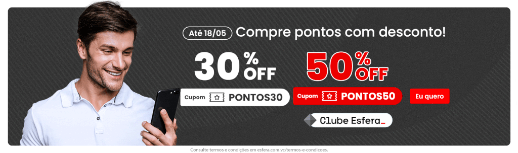 Acesse o site da esfera para comprar nesse link. Lembre de utilizar o cupom PONTOS50