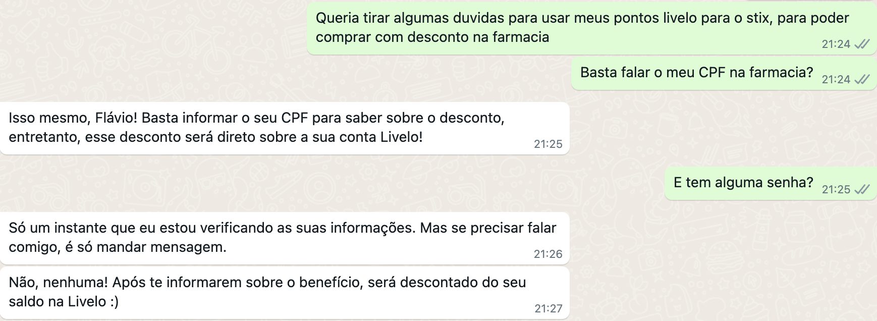 2. Existem diversos relatos que os atendentes informam apenas que existe um desconto disponível e não falam que irão converter os pontos LIVELO para abater o valor da compra; e